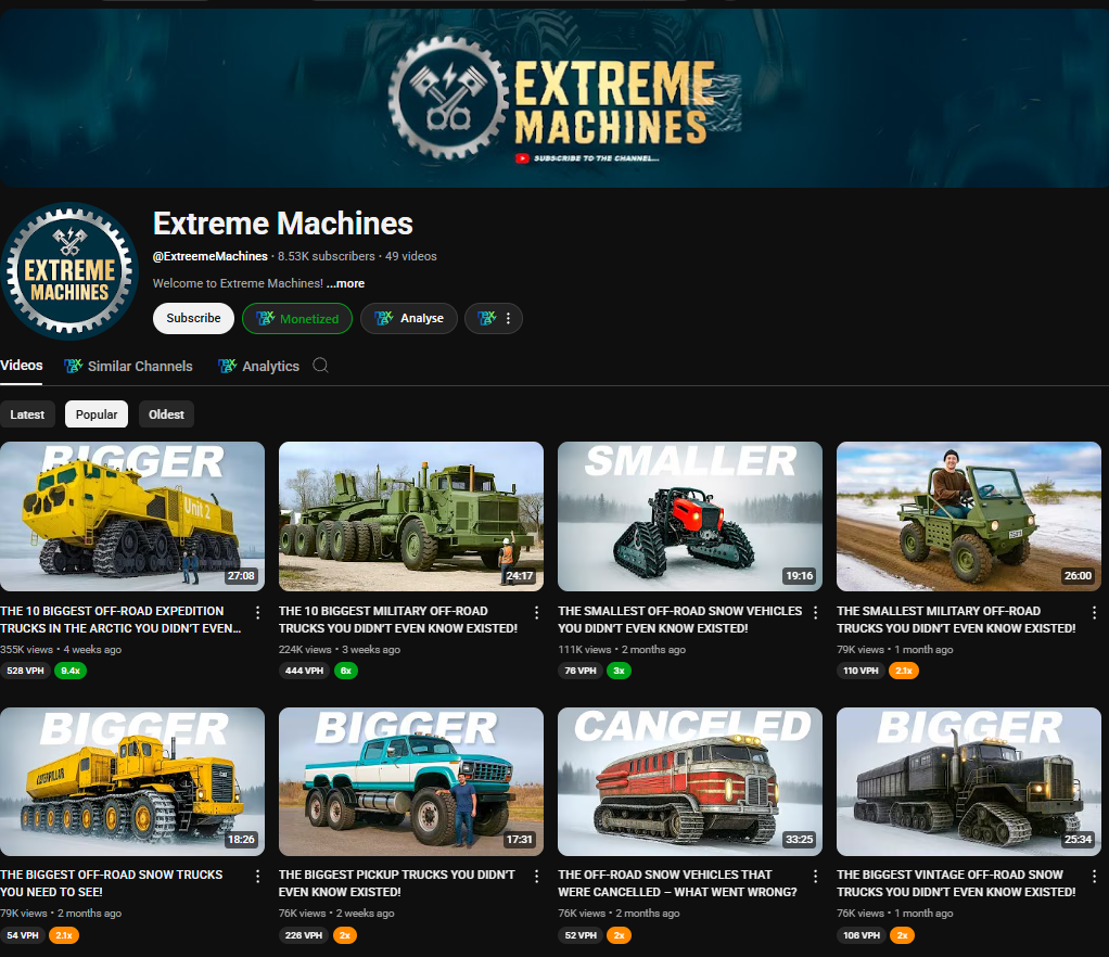 Here are successful channels that demonstrate VidRush-compatible niches, organized by category with visual examples.